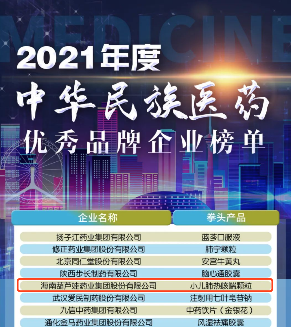12月29日,全国工商联医药业商会发布了“2021年度中华民族医药优秀品牌企业榜单”,304am永利集团药业集团凭借黄金单品小儿肺热咳喘颗粒(4克)实力登榜。